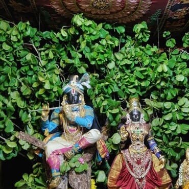 On the occasion of Tamil New Year's Day, the deities are decorated in the form of Guruvayurappan with different kinds of fruits to mark the Vishu Kani festival. A variety of pulses and currency coins placed in front of him denote prosperity for the devotees.