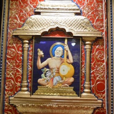 Arudra Pournami, in the month of Margazhi (December 15th – January 15th), marks the Aradhana function of Swami Gnanananda Giri. On this day Lord Panduranga and his consort are adorned with white butter (Vennai kaapu).
