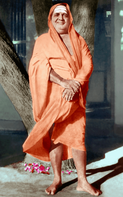 Swami Gnanananda Giri was an ageless saint. To write about him is like trying to write about an ocean. In Thapovanam, he would be seated in the main hall in the morning during prayer time. His radiance lit up the entire ashram. His eyes would always be upwards, in bliss and in an unfathomable state of consciousness. In communication, he always referred to himself in third person singular.